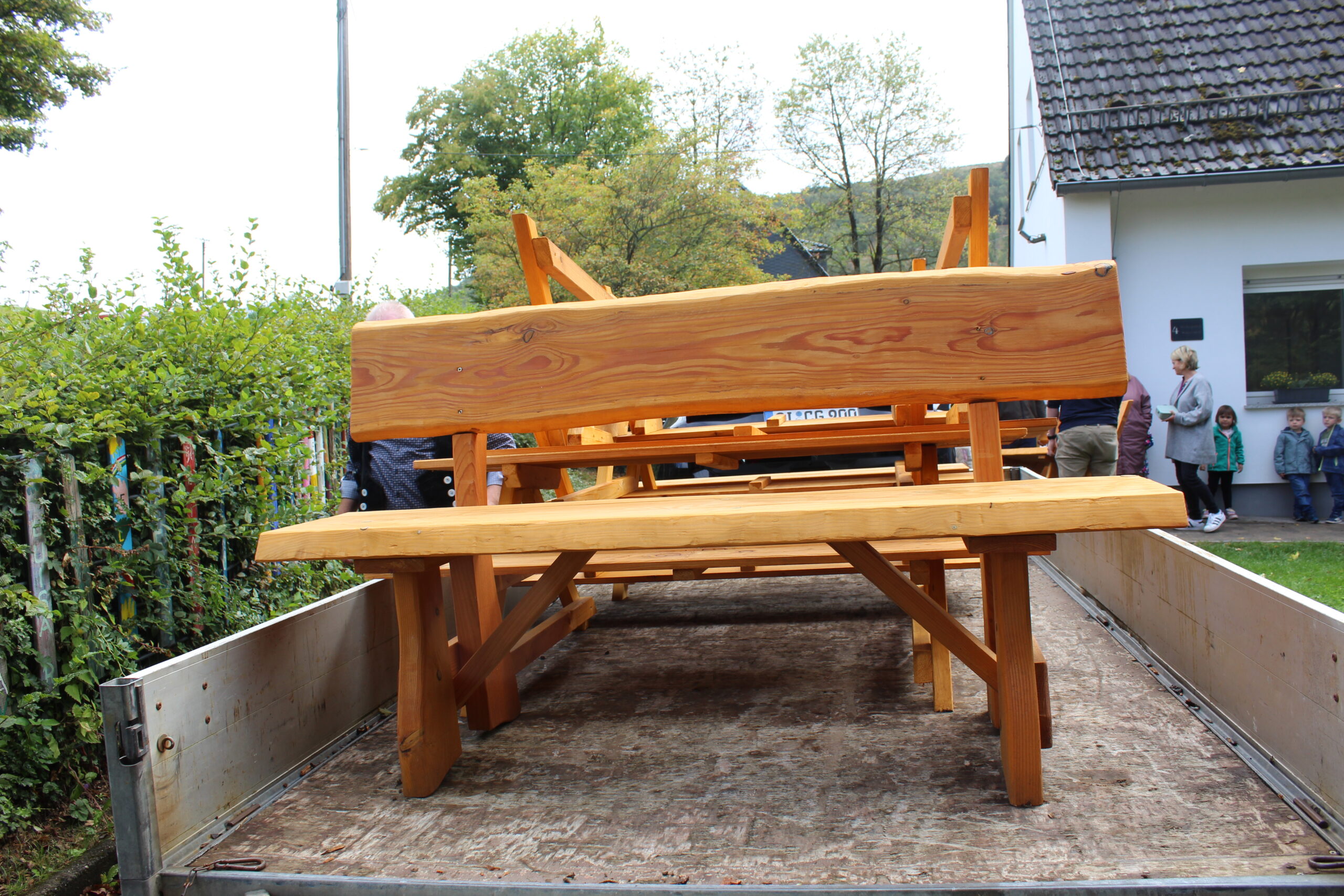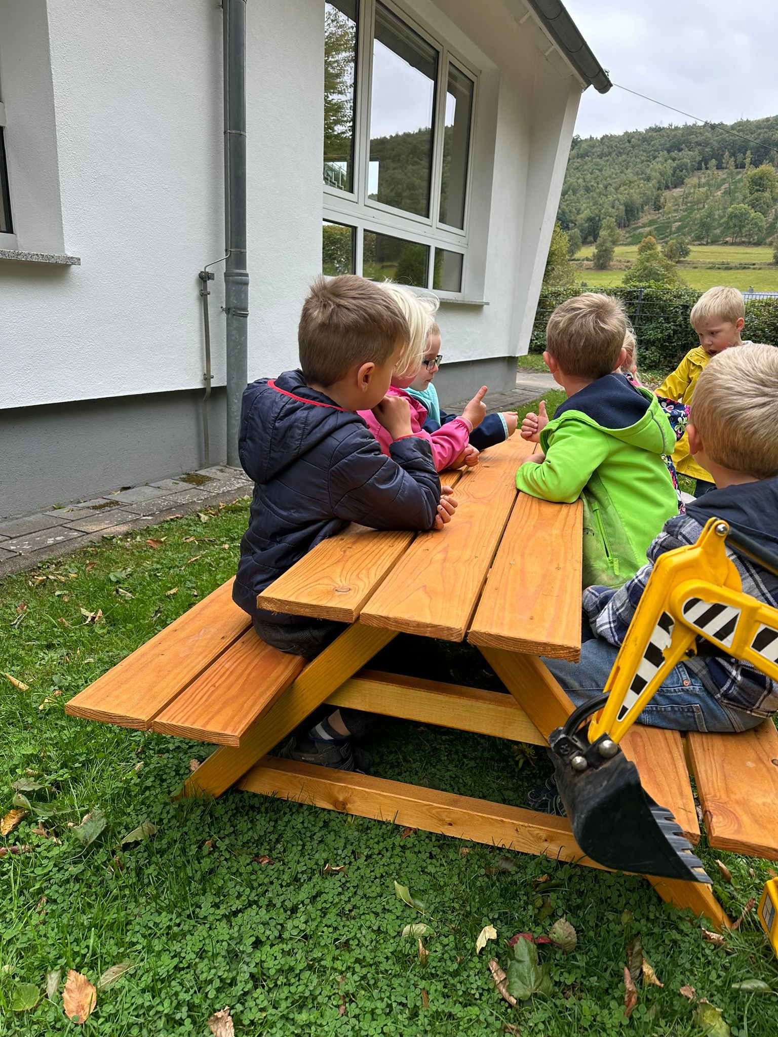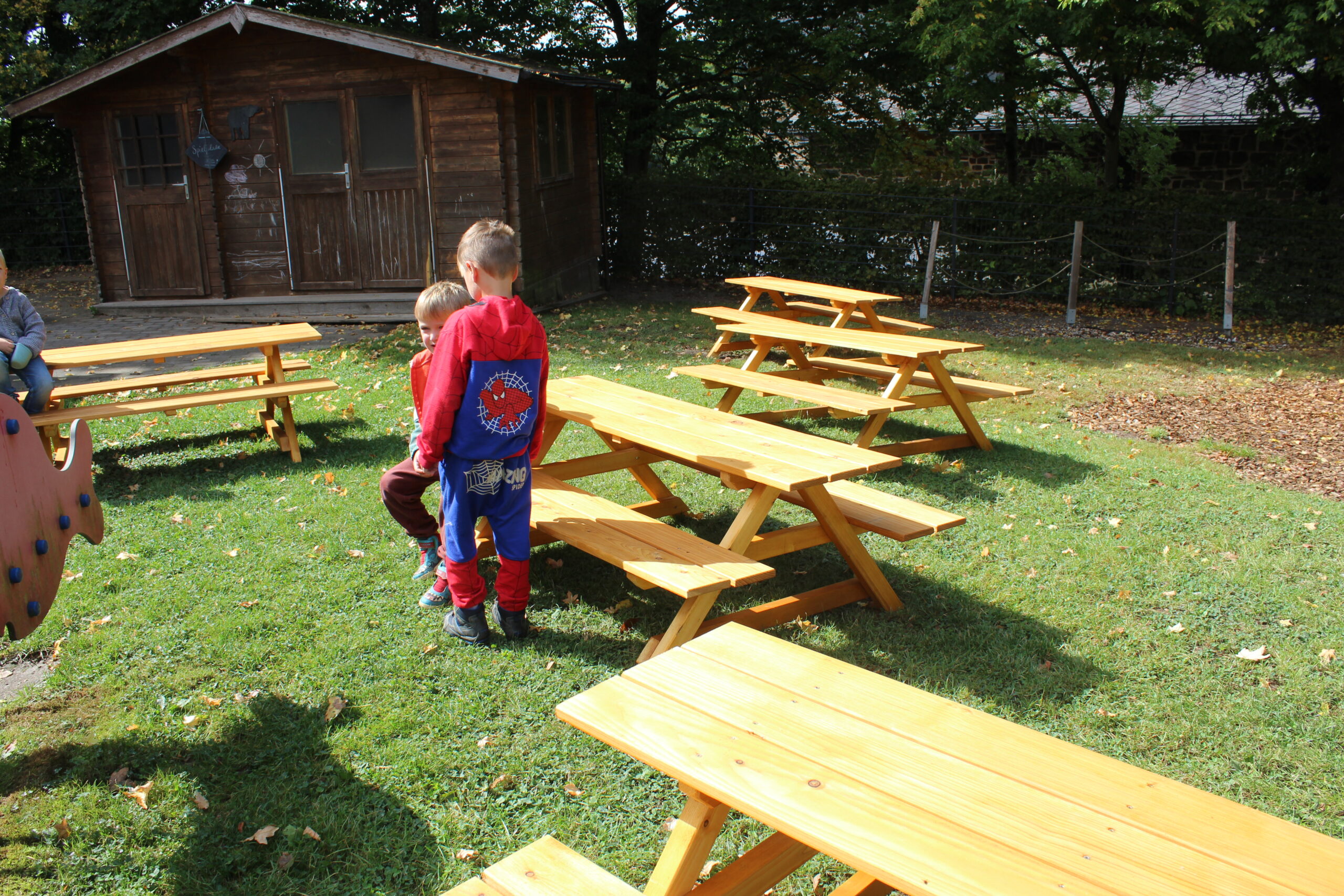 Mit großer Freude dürfen wir berichten: Unsere Kinder – und natürlich auch wir Erwachsenen – freuen uns über neue Sitzgarnituren, die von der Firma Georg Sting Sägewerk und Zimmerei an unseren Kindergarten gespendet wurden.