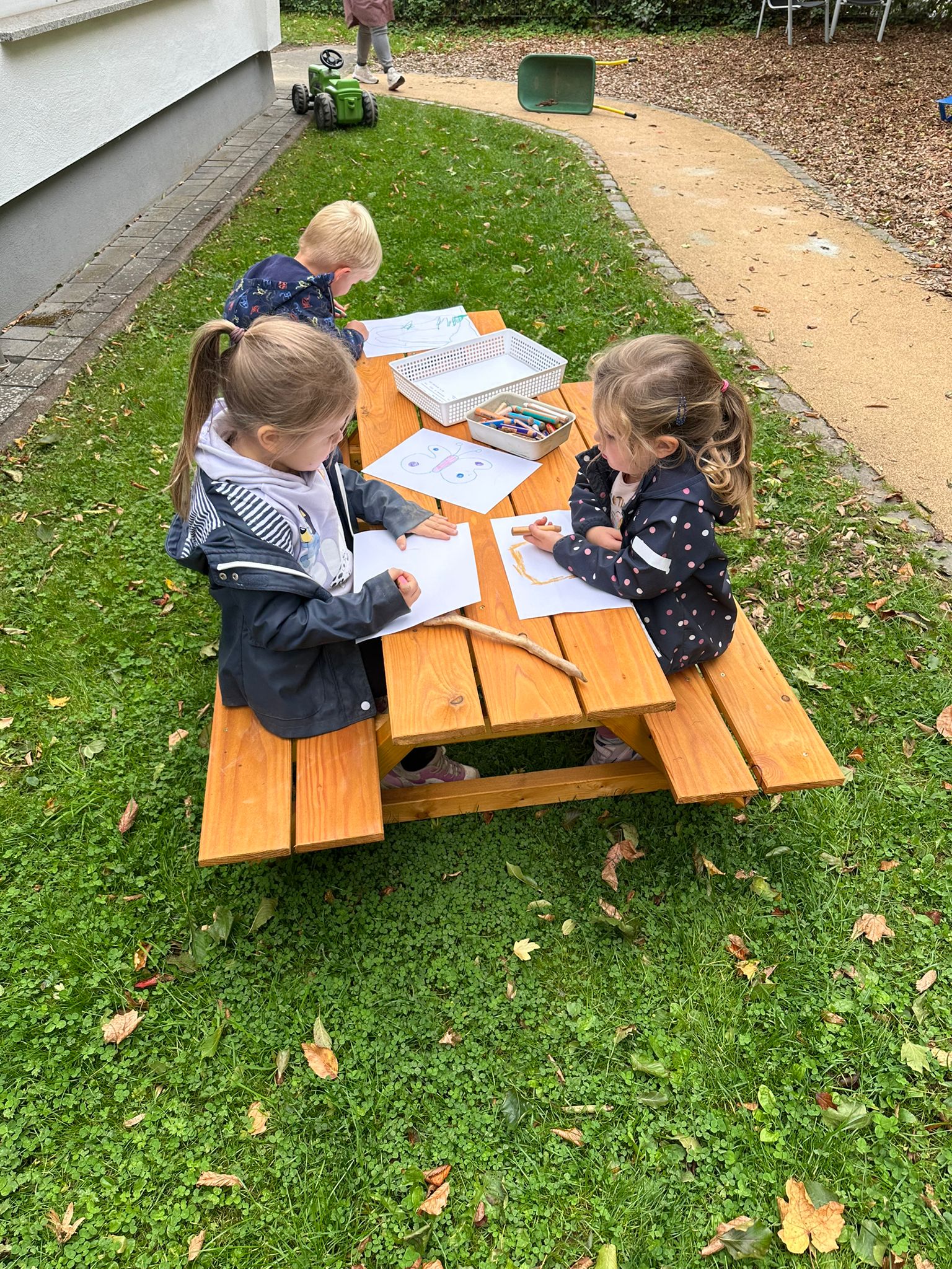 Ein besonderer Dank gilt unserer lieben Regina, die dieses Projekt mit viel Herzblut in die Wege geleitet und uns mit dieser Überraschung beschenkt hat. Zusätzlich zu den Sitzgarnituren verschönern nun auch zwei neue Bänke unser Außengelände. Sie laden Groß und Klein zum Spielen, Ausruhen, Malen oder zu gemeinsamen Mahlzeiten im Freien ein.