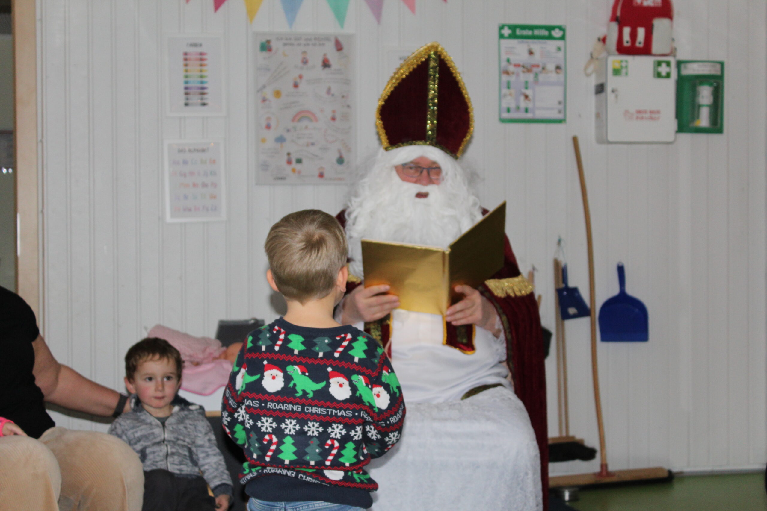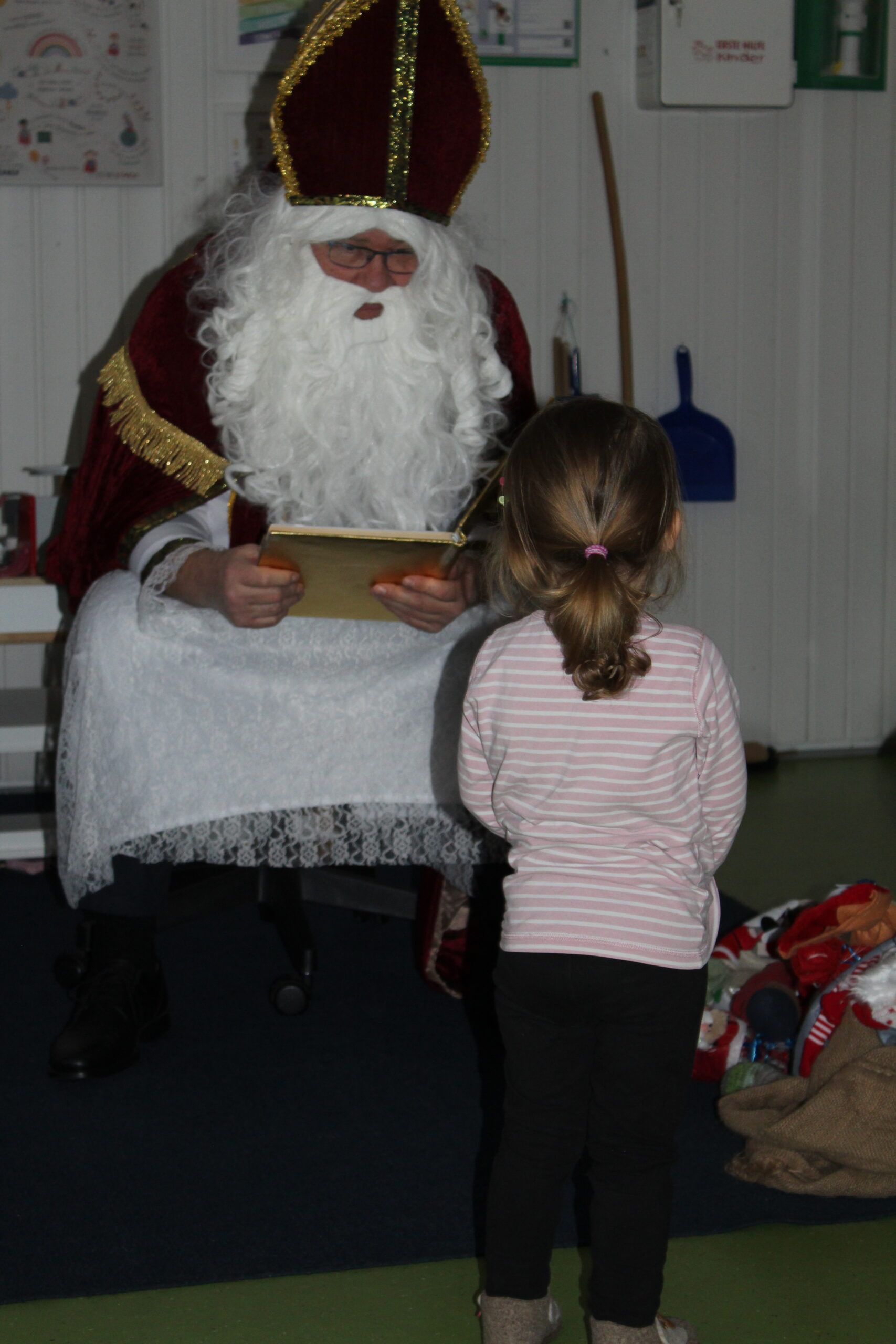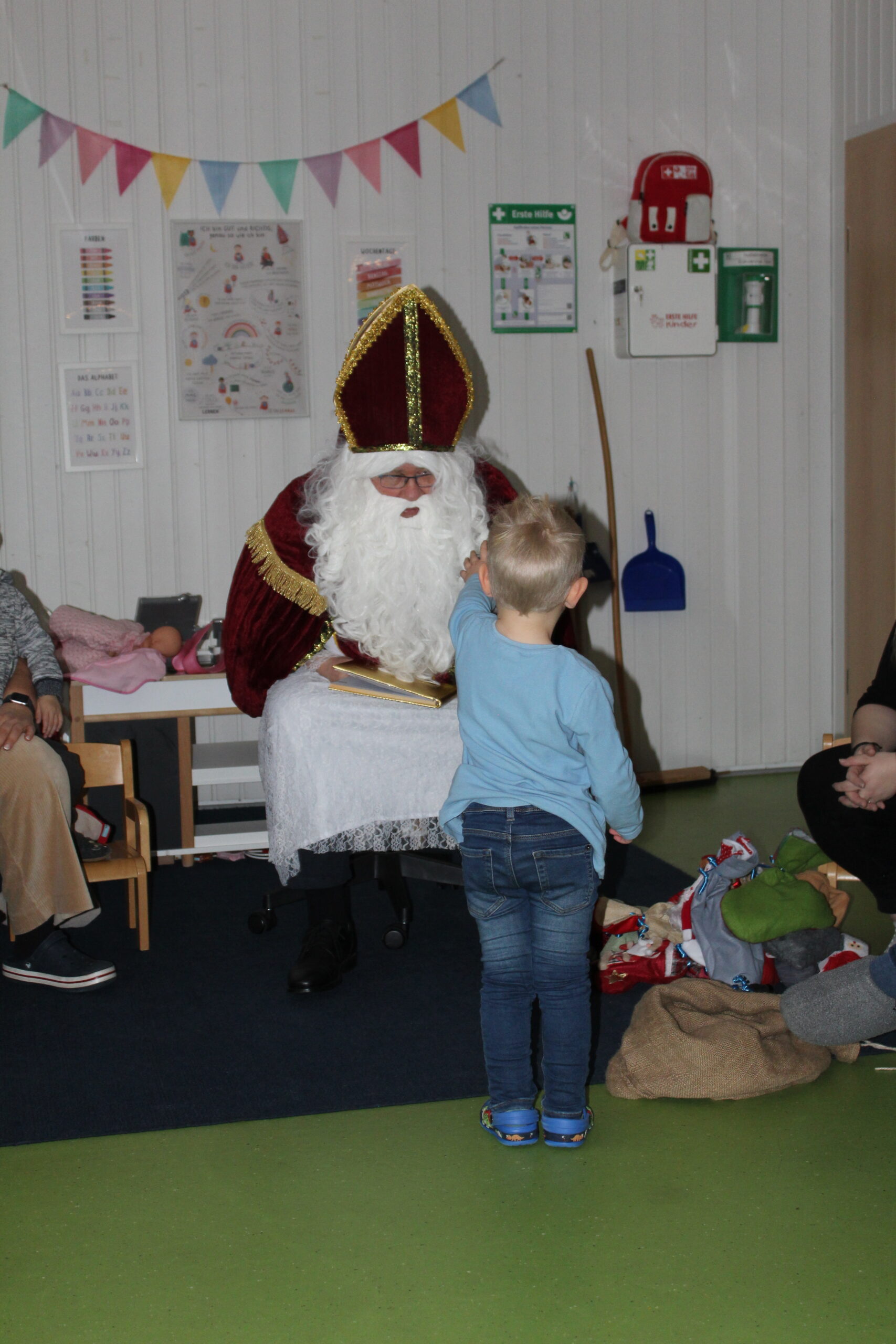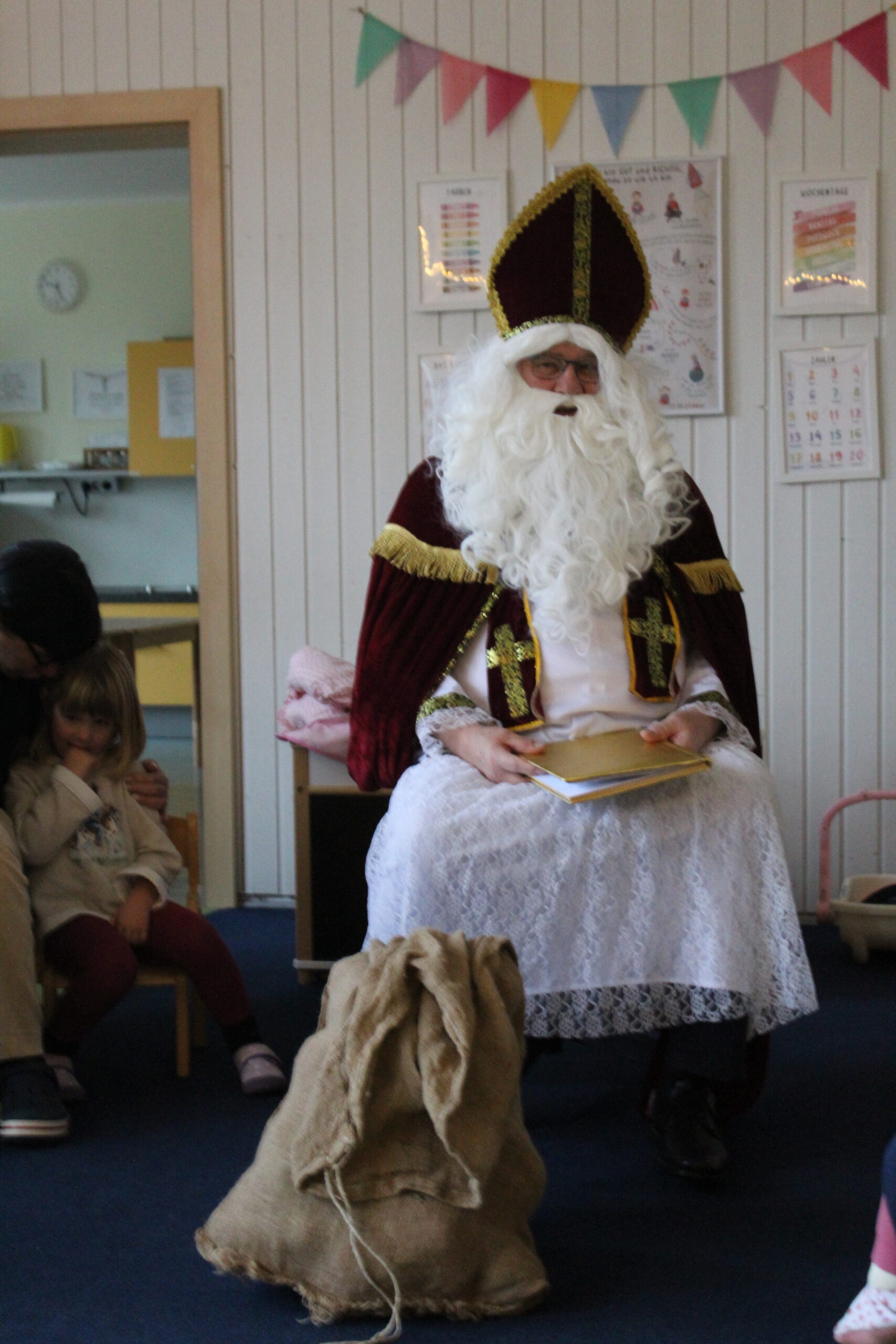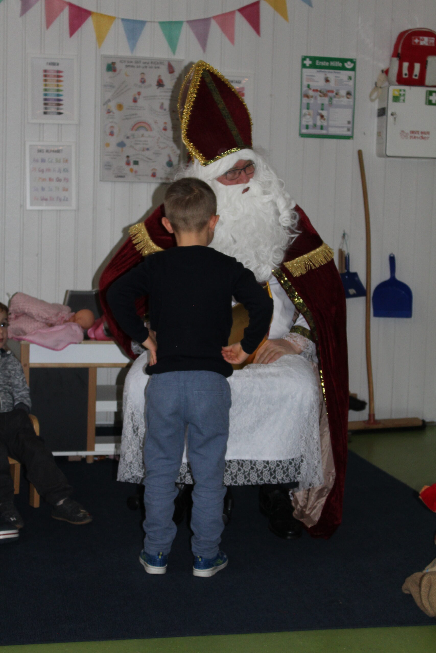 Heute war ein ganz besonderer Tag in unserer Kita, denn der Nikolaus hatte seinen Besuch angekündigt. Schon am Morgen herrschte eine feierliche Stimmung. Die Kinder erzählten aufgeregt voneinander, was sie über den Nikolaus wussten, und fragten immer wieder, wann er endlich kommen würde. Gemeinsam wurde gesungen, gebastelt und leise spekuliert, wie der Nikolaus wohl aussehen und was er erzählen würde.