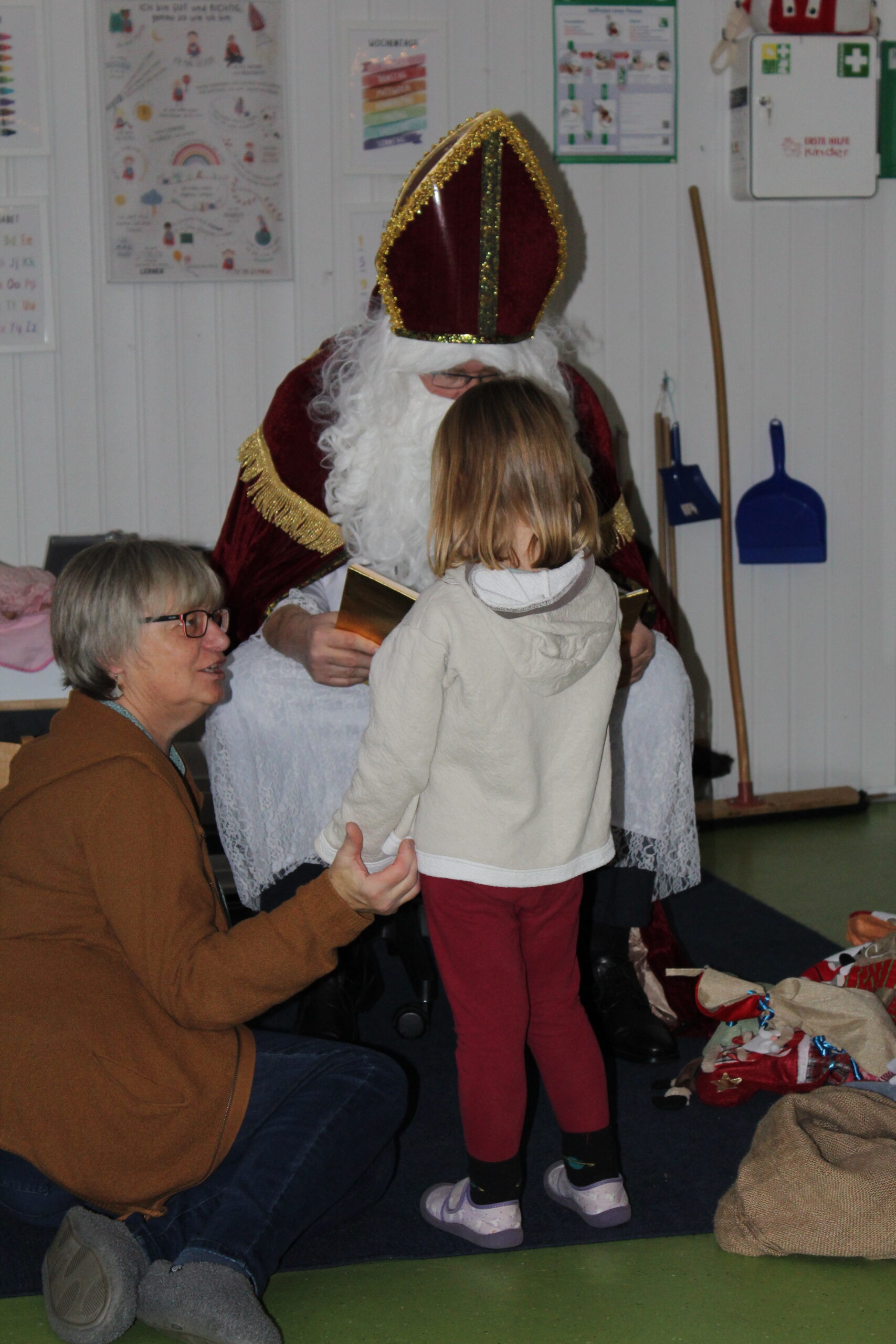 Zum Abschluss sang die Gruppe noch ein Lied für den Nikolaus, bevor er sich wieder auf den Weg machte. Nachdem er gegangen war, sprudelten die Kinder nur so vor Erzählungen: Wer was bekommen hatte, was sie besonders schön fanden und wie aufregend der Moment gewesen war. Der ganze Vormittag blieb erfüllt von fröhlicher Stimmung und vielen kleinen Gesprächen über den besonderen Besuch.